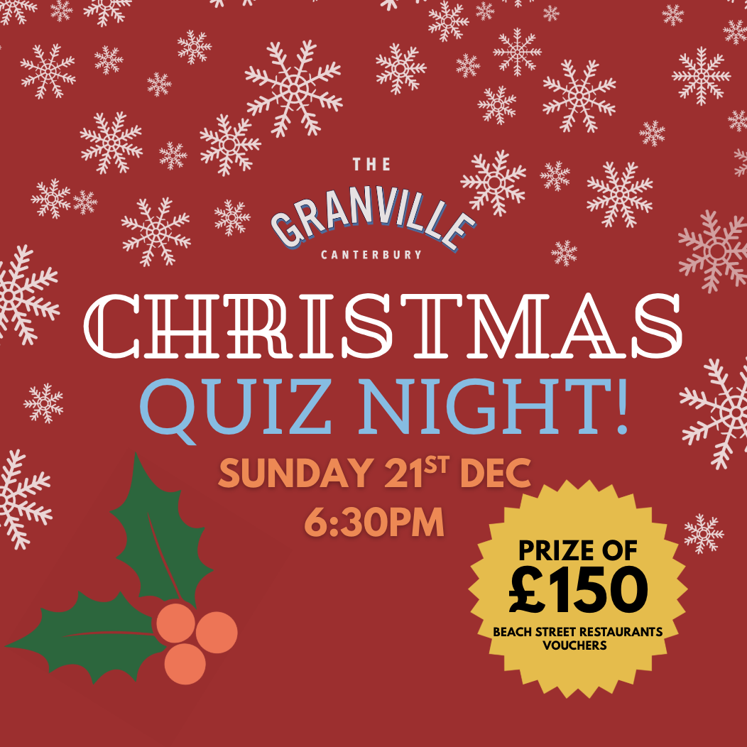 CHRISTMAS QUIZ NIGHT hosted by our amazing Luke! Get ready for festive questions, friendly competition, & plenty of yuletide cheer. Get your Christmas jumper on, bring your team, and get ready for a holly-jolly showdown! Prize of £150 in Beach Street Restaurant vouchers for the winning table!